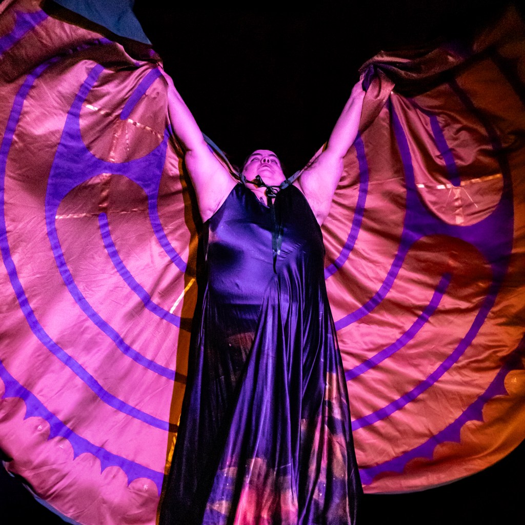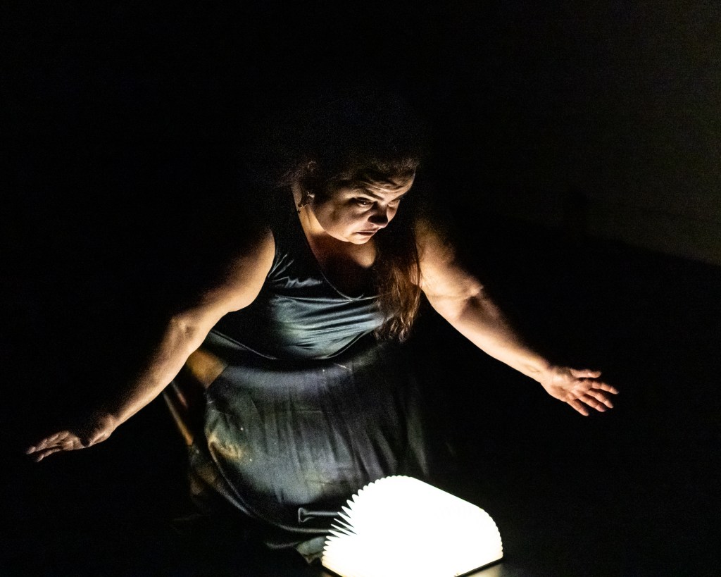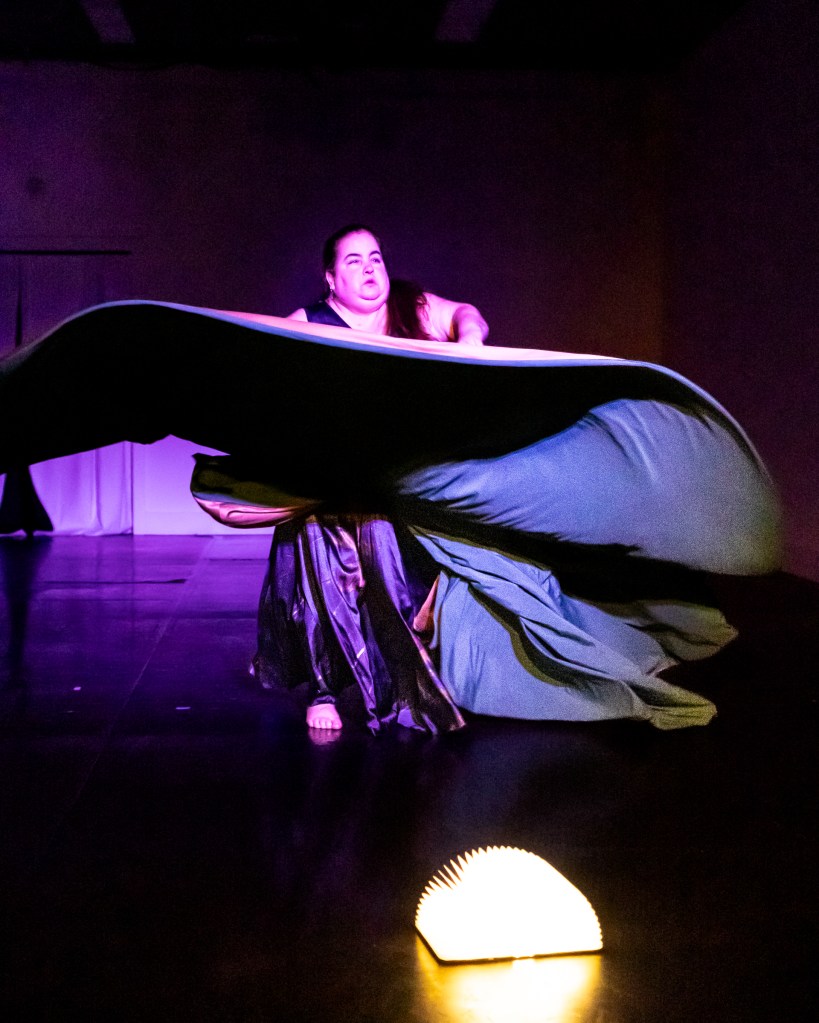 “Bigger on the Inside” a movement and spoken word piece with sounding devised by Maia. Photo images by Sean Anomie from performance workshopped at Safehouse Arts on May 3, 2025.